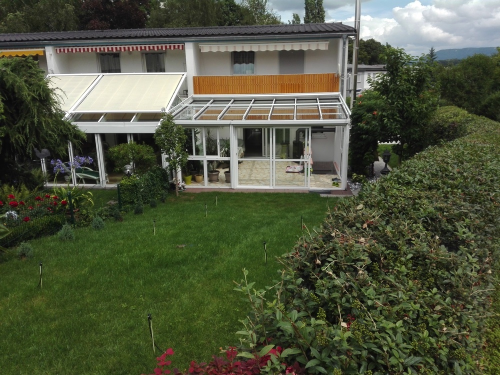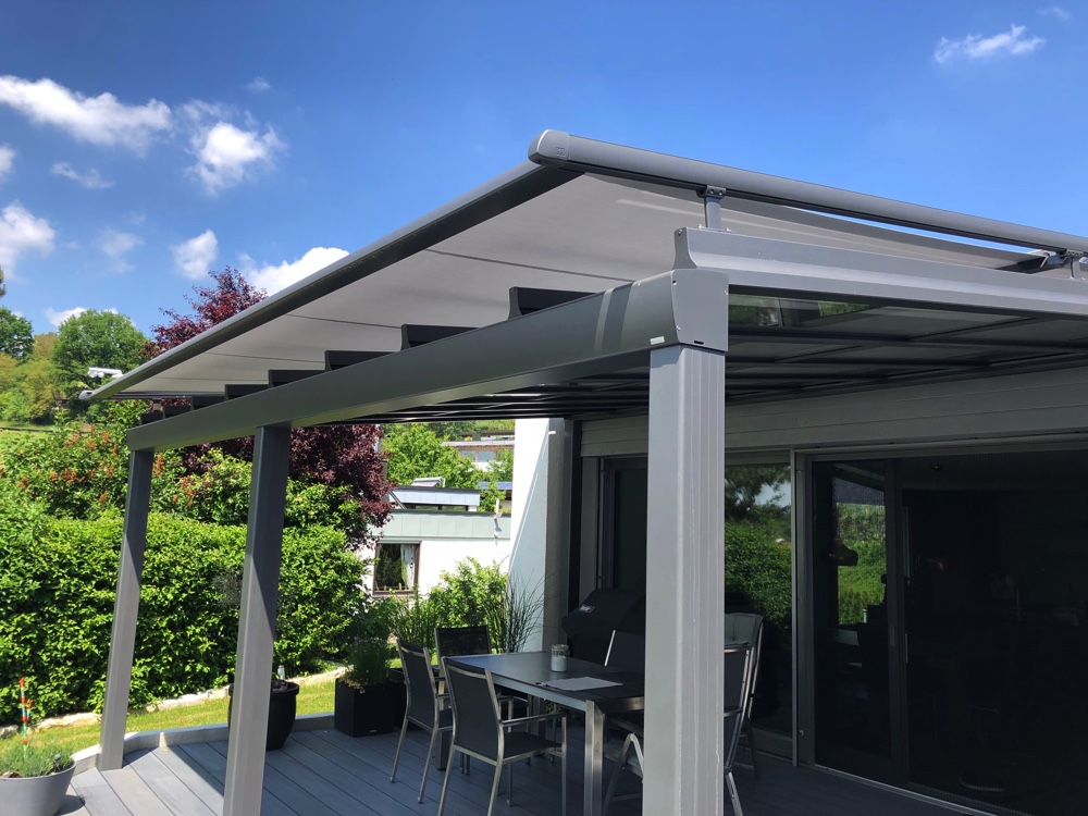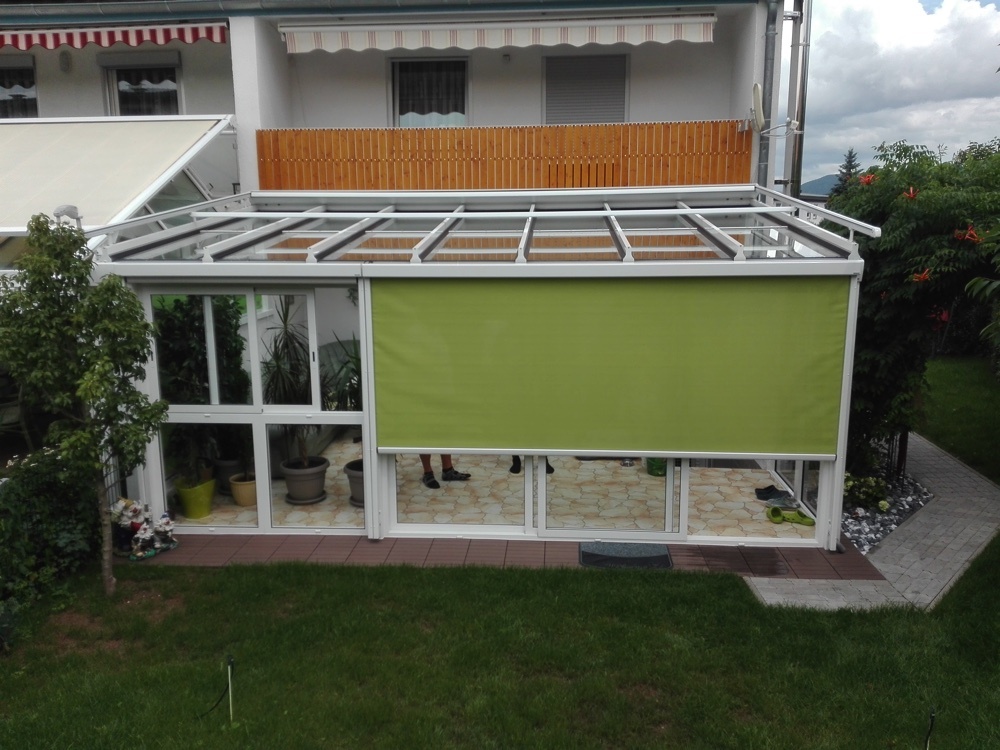 Alle Terrassendächer lassen sich problemlos und wirtschaftlich mit einer Beschattungsanlage von RS-Reich aufwerten ob Überglas oder Unterglas.
